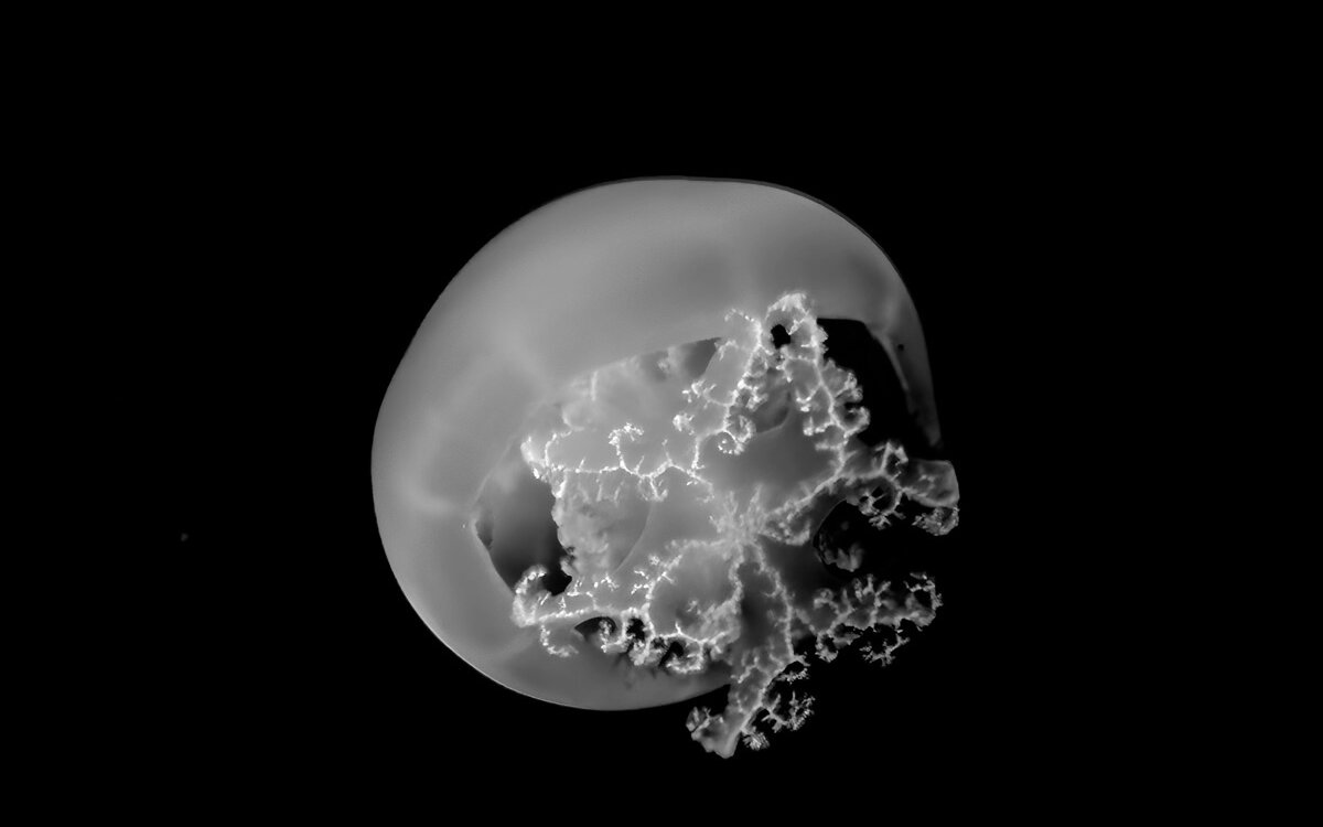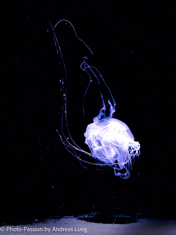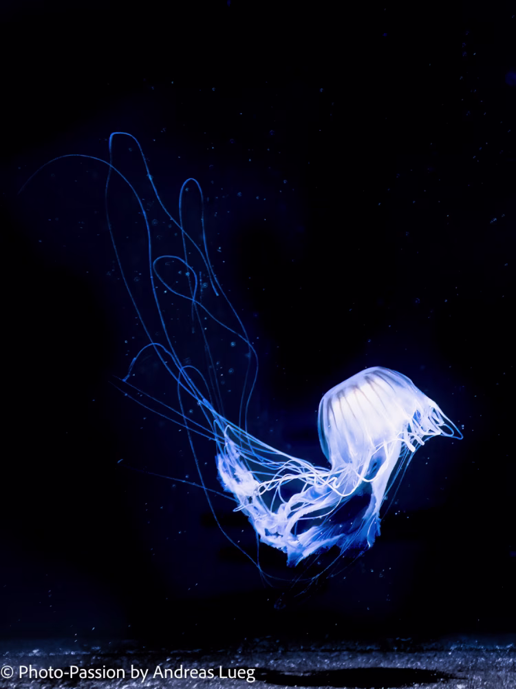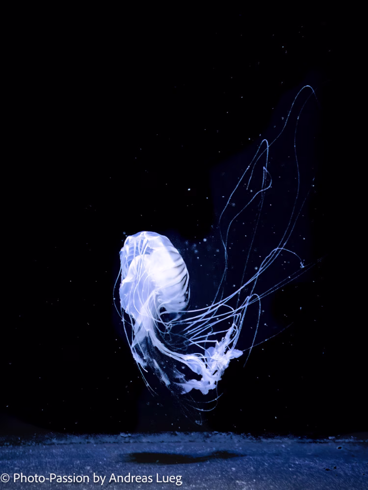 Ich war einige Wochen zuvor im Aquarium des Berliner Zoos fotografieren. Dabei habe ich eine große Qualle in Becken fotografiert, die einen anmutigen Tanz aufführte. Die gesamte Szenerie war für mich wie eine Theaterbühne, auf der die Qualle tanzte.